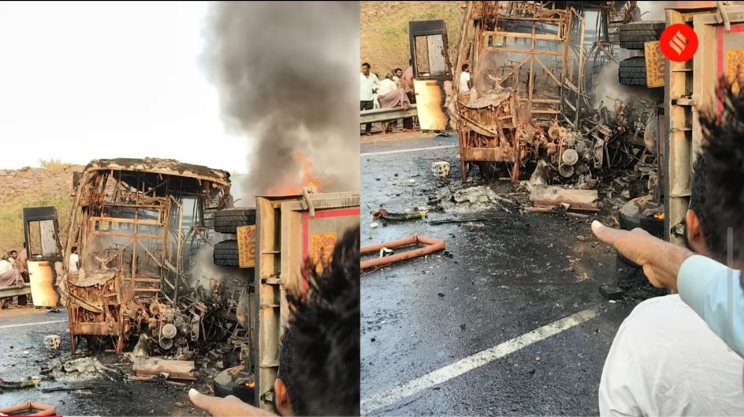 घटना गुरुवार तड़के 5:30 से 6:00 बजे के बीच की है, जब राया वरम (Raya Varam) पुल के पास सन्नाटा पसरा था। 'हरिकृष्णा ट्रेवल्स' की प्राइवेट बस अपनी पूरी रफ्तार में थी। सामने कंक्रीट के चिप्स से लदा एक डंपर खड़ा था या धीमी गति में था। बस की रफ्तार इतनी तेज थी कि ड्राइवर चाहकर भी उसे काट नहीं सका और बस का अगला हिस्सा सीधे डंपर के डीजल टैंक में जा घुसा।